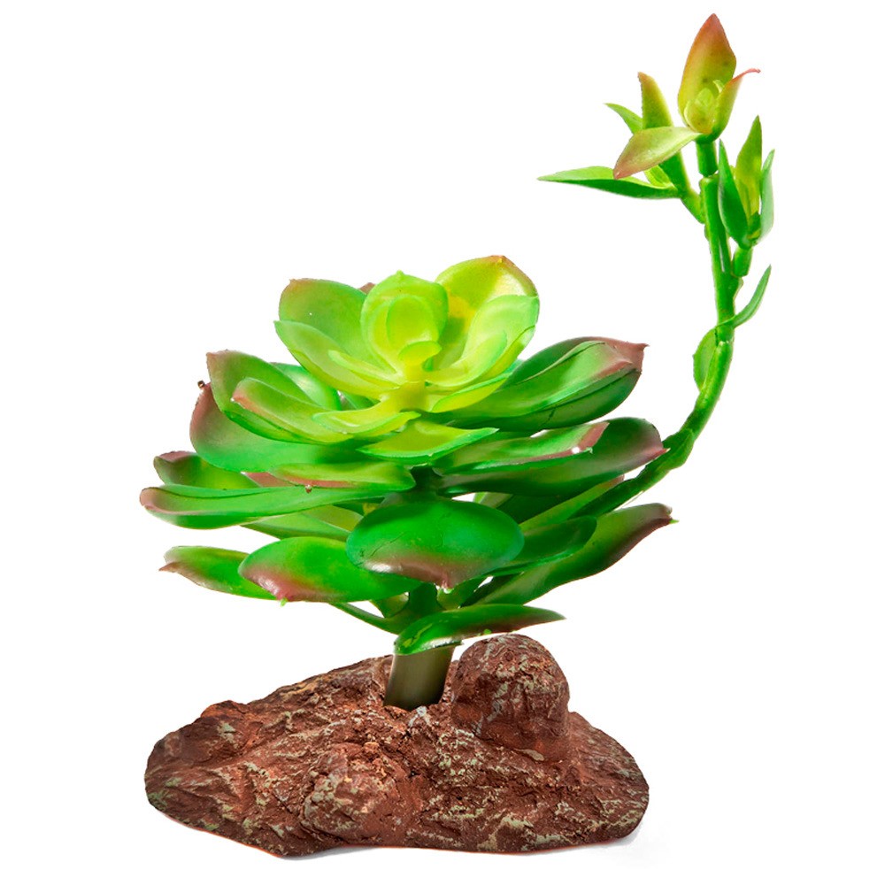 Пластиковое растение на подставке из полиэфирной смолы подходит для оформления пустынных, полупустынных и тропических террариумов. Неоспоримое преимущество искусственных растений в том, что им не