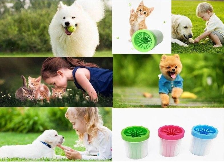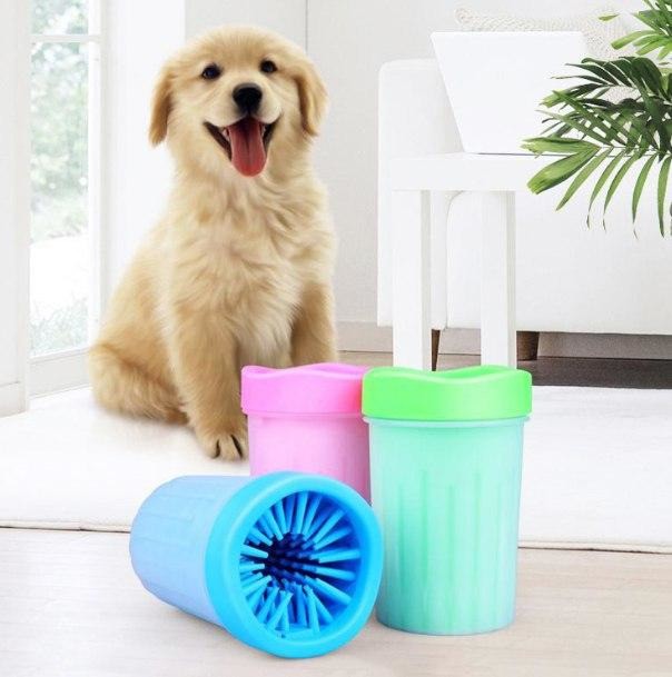 Эта незаменимая вещь для владельцев мелких и средних пород собак и кошек состоит из пластмассового стакана и щетки с силиконовыми ворсинками, смывающая грязь даже с труднодоступных мест между
