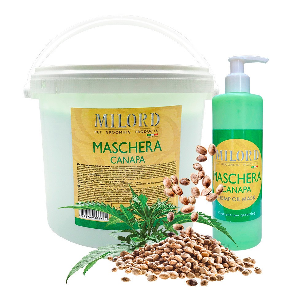 MILORD Маска питательная «Канапа» подходит для всех типов шерсти, особенно для длинной шерсти собак и кошек. Маска позволяет быстро справиться с колтунами. В составе имеется масло конопли, которое