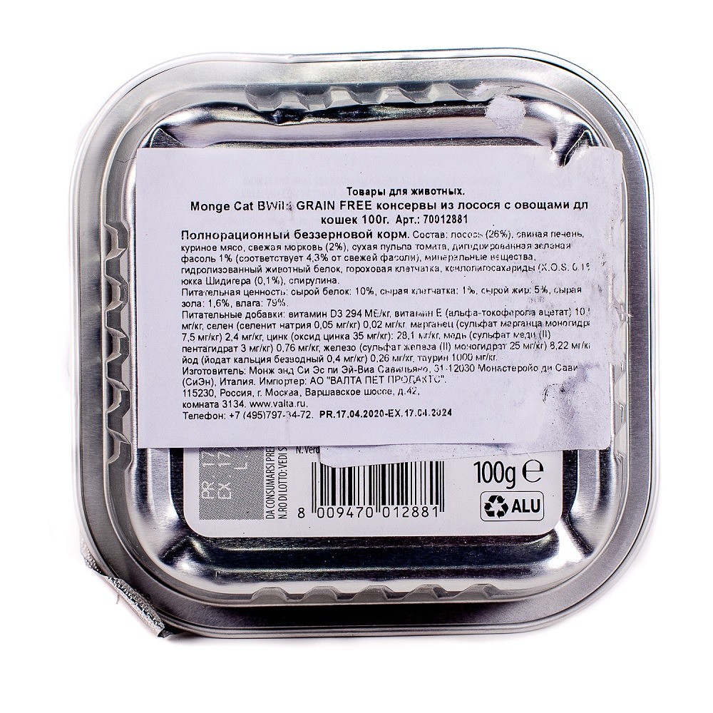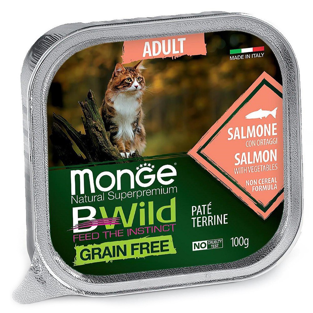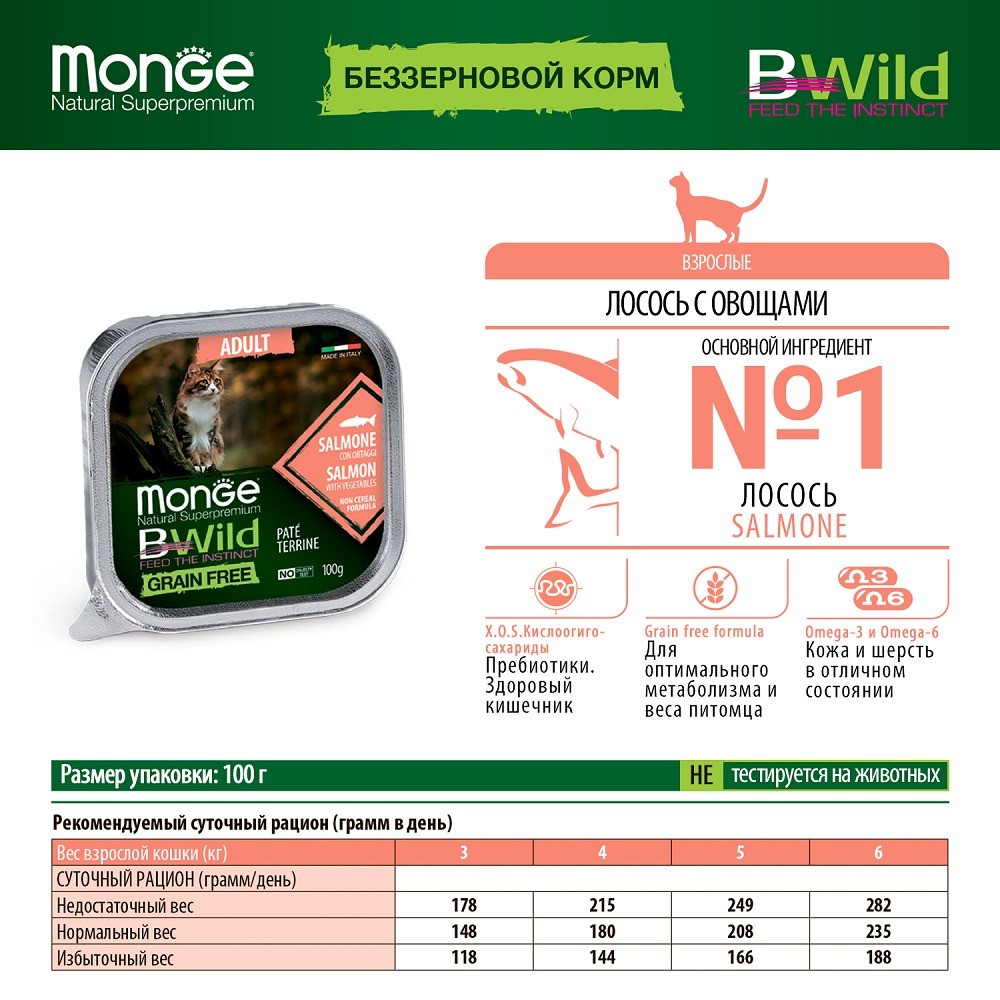 Monge Cat Bwild Grain Free Adult Salmom with Vegetable — сбалансированный полнорационный беззерновой корм из лосося с овощами, который разработан с учётом физиологических особенностей