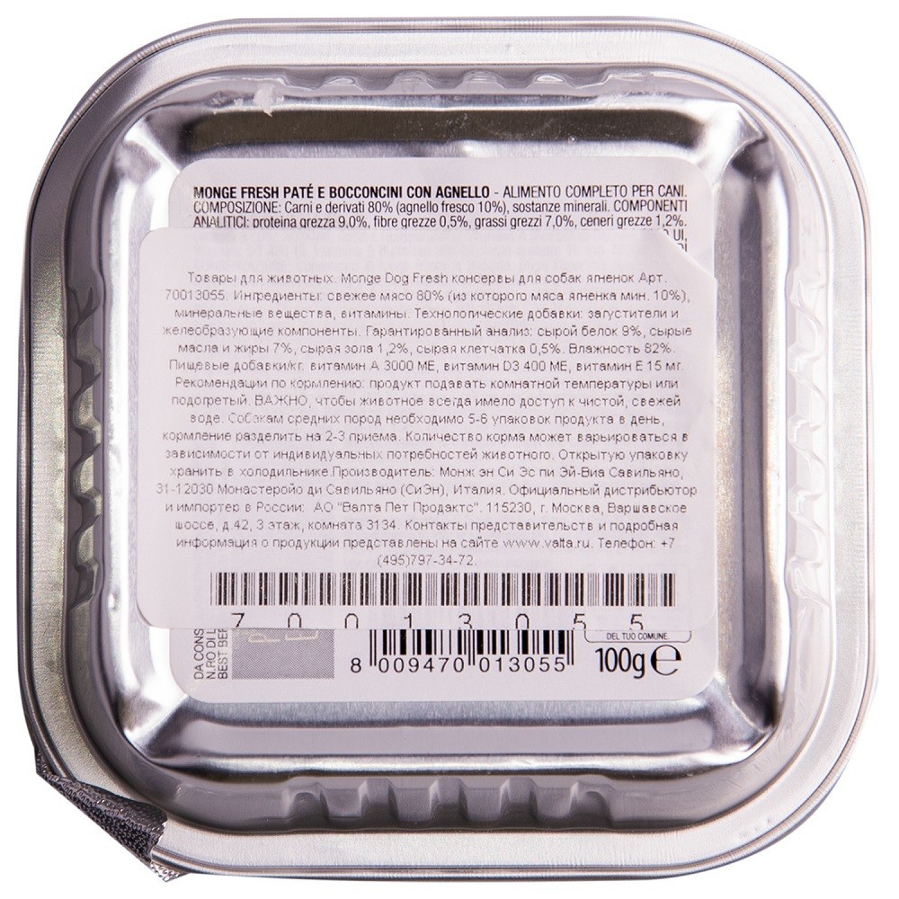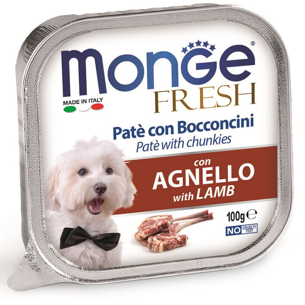 Monge Dog Fresh Lamb — полнорационный влажный корм с мясом ягнёнка для взрослых собак всех пород.