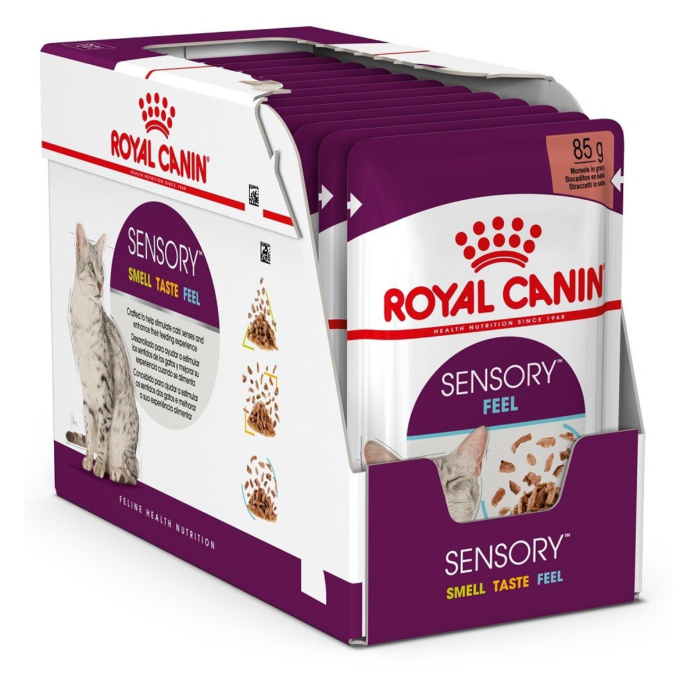 Формулы ROYAL CANIN® SENSORY™ Ощущения – это кусочки в соусе с уникальной, более кремовой текстурой и нежной оболочкой, ощущение от которой сохраняется дольше. Кроме этого, в ROYAL CANIN®