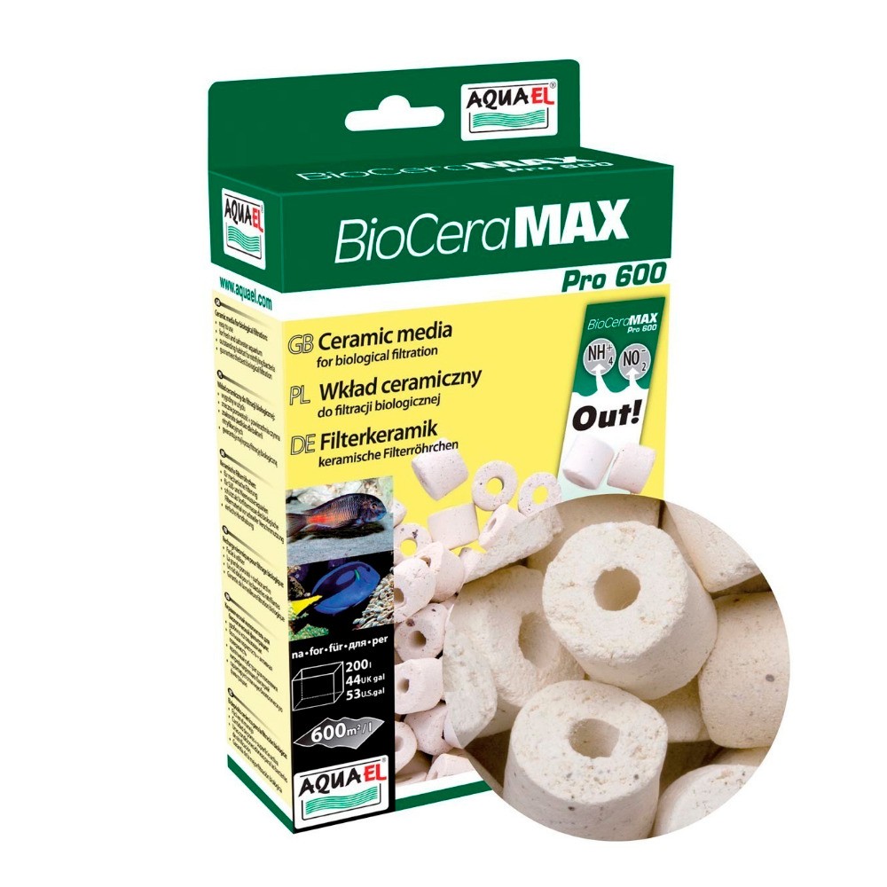 Он имеет форму цилиндров, сделанных из пористой керамики, обеспечивающей очень большую фильтрующую поверхность (600м2/л). Со временем внутри пор цилиндров BioCeraMAX Pro, помещенных в аквариумный