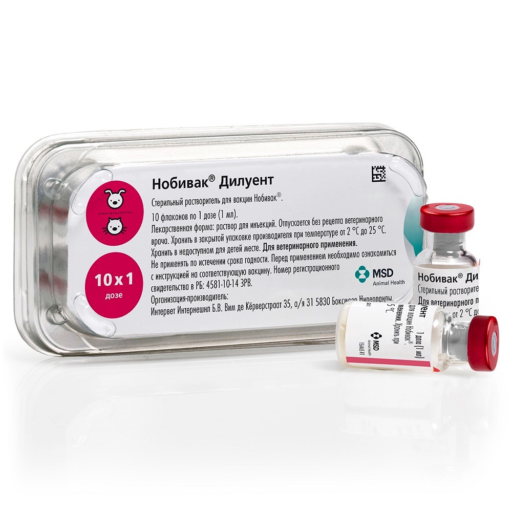 MSD Animal Health Нобивак Дилуент (Nobivac Diluent) – предназначен для растворения сухих вакцин Нобивак.