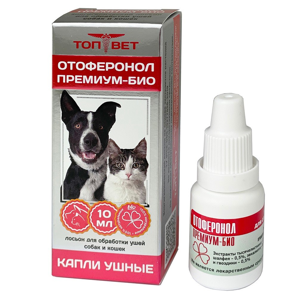 Отоферонол Премиум-Био – зоогигиенический лосьон (капли) для гигиенической обработки ушей собак и кошек с целью безболезненного и атравматичного удаления из ушной раковины и слухового прохода серы
