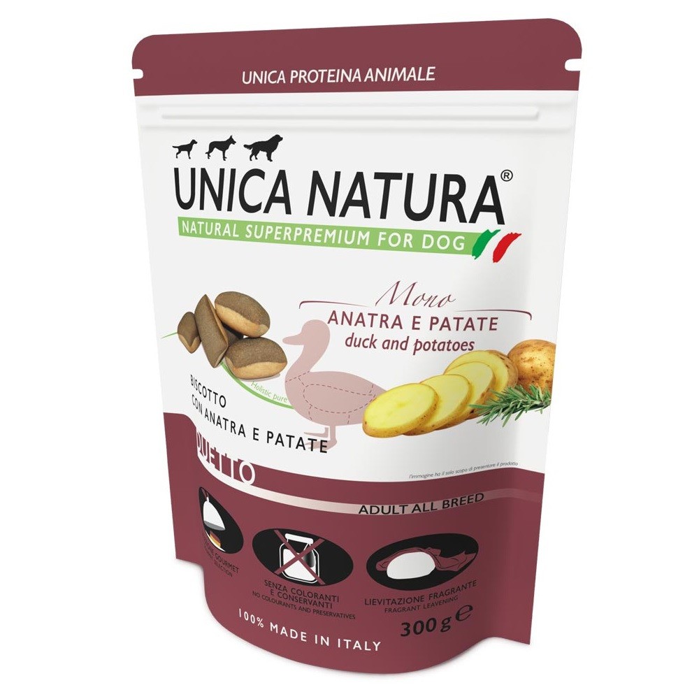 Unica Natura Mono Duetto — biscotto con Anatra e Patate — бисквит с уткой и картофелем для взрослых собак средных, крупных и гиганских пород.