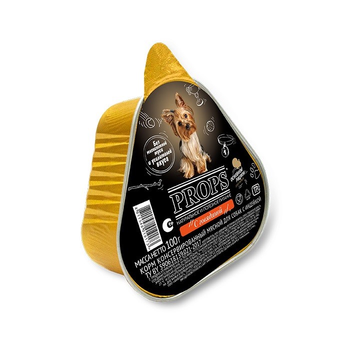 PROPS Корм консервированный мясной с говядиной для собак мелких и средних пород.