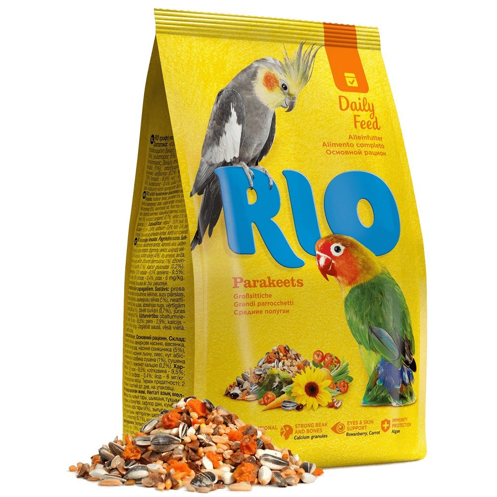 - Суточная норма: 20-30 г корма RIO для средних попугаев. Основной рацион.