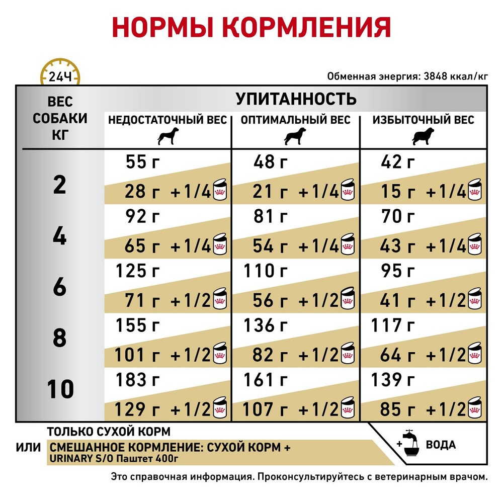 снижения риска рецидивов струвитного уролитиаза. В случае инфицирования мочевыводящих путей срок назначения Urinary S/O Small Dog Canine в комплексе с антибиотиком должен составить не менее одного