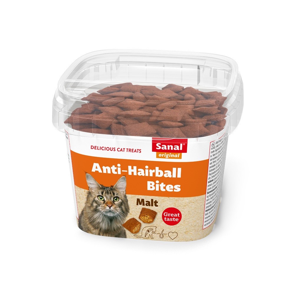 Подушечки Sanal Anti Hairball Malt Bites — это хрустящее лакомство со вкусом птицы для вывода шерсти у кошек и котят. Нежнейшая начинка из солодовой пасты быстро и эффективно справляется с