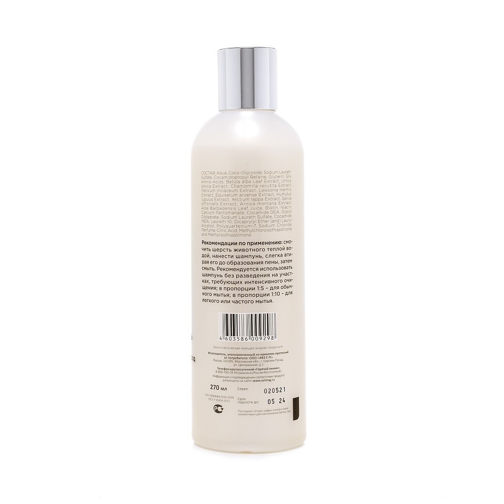 Шампунь применяют для регулярного косметического и гигиенического ухода за кожно-волосяным покровом животных.