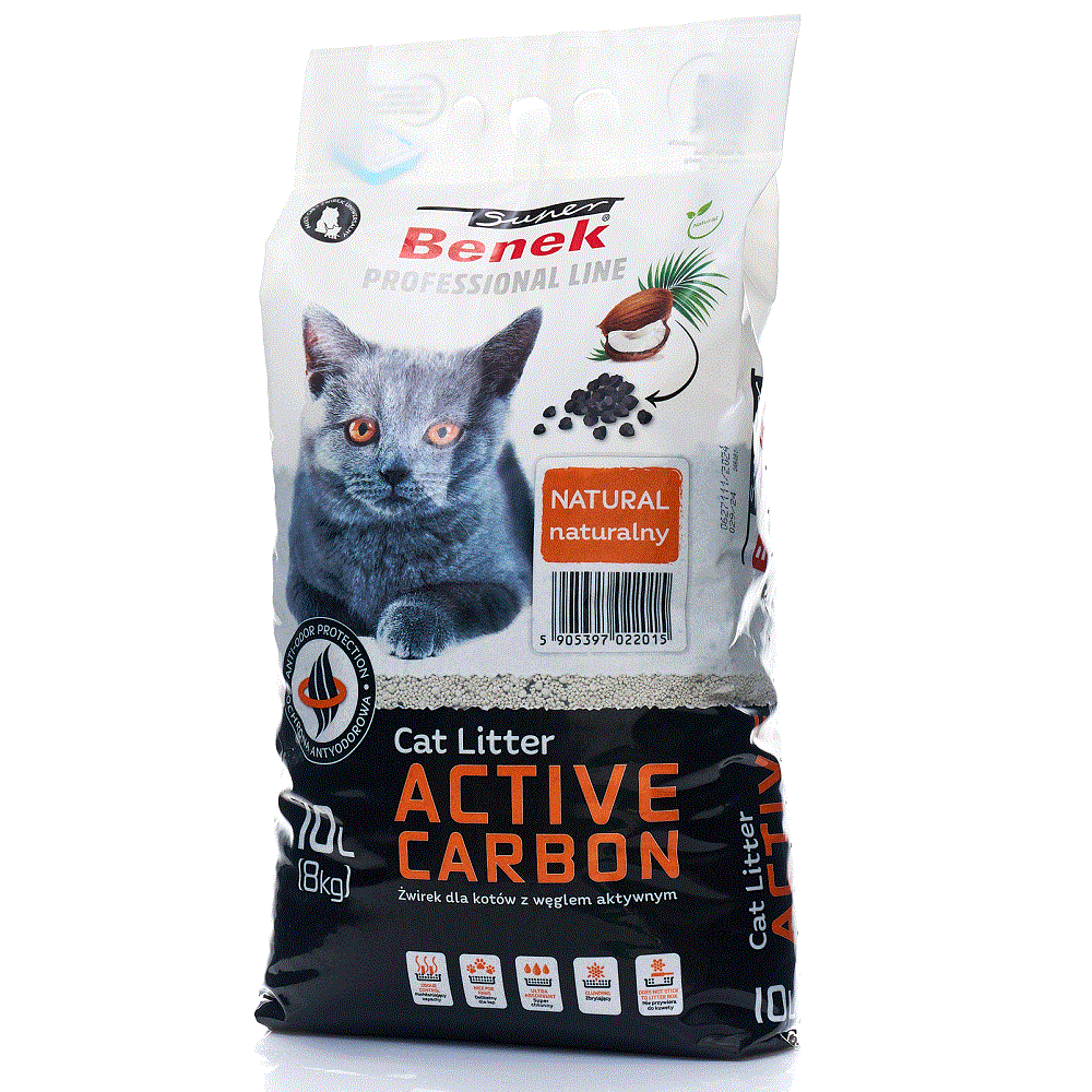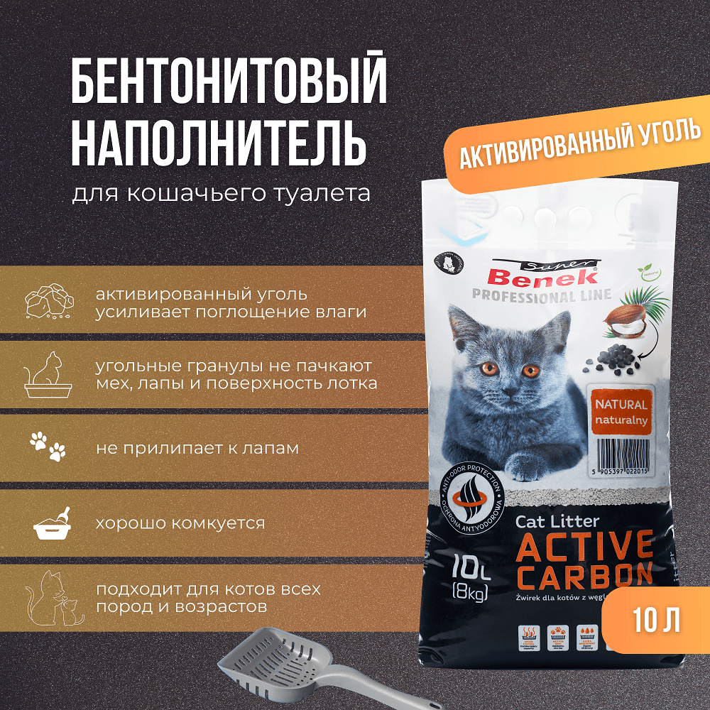 Super Benek Active Carbon Бентонитовый наполнитель с активированным углем для кошачьего туалета.