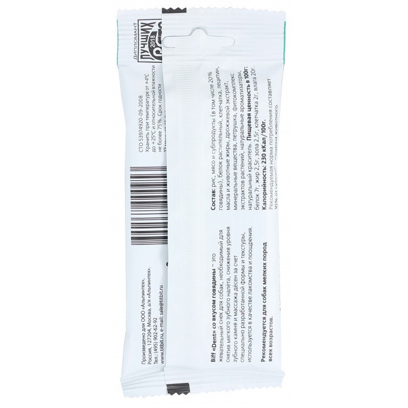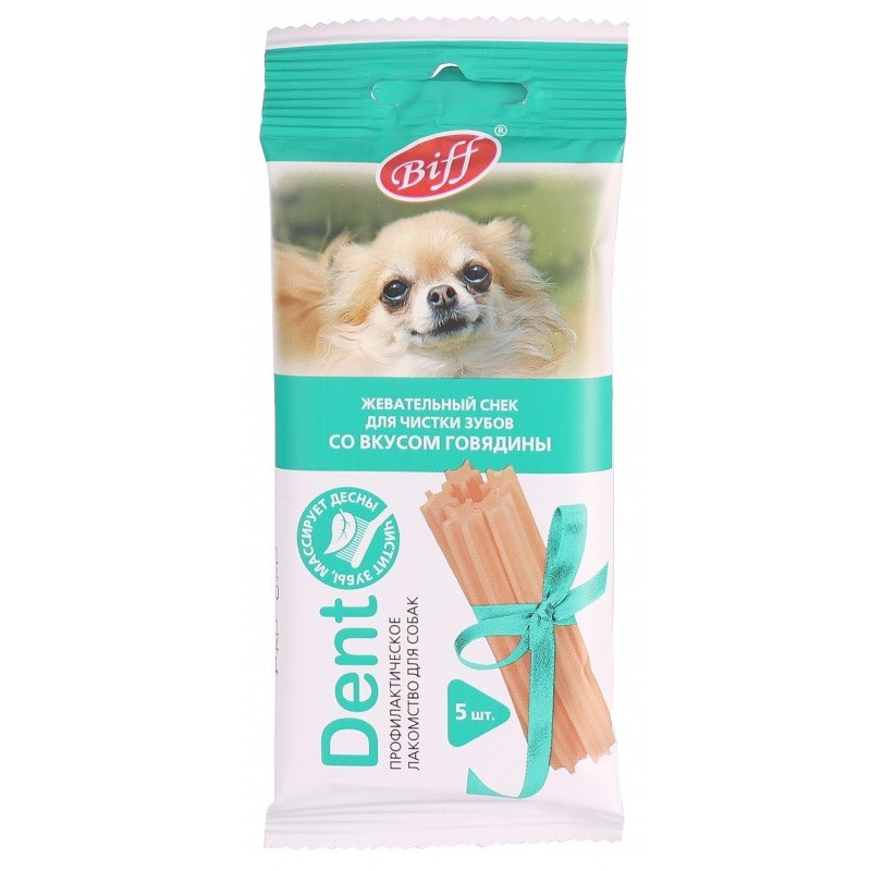 Лакомство Biff «Dent» со вкусом говядины — это жевательный снек для собак, необходимый для снятия мягкого зубного налета, снижения уровня зубного камня и массажа для десен за счет специально