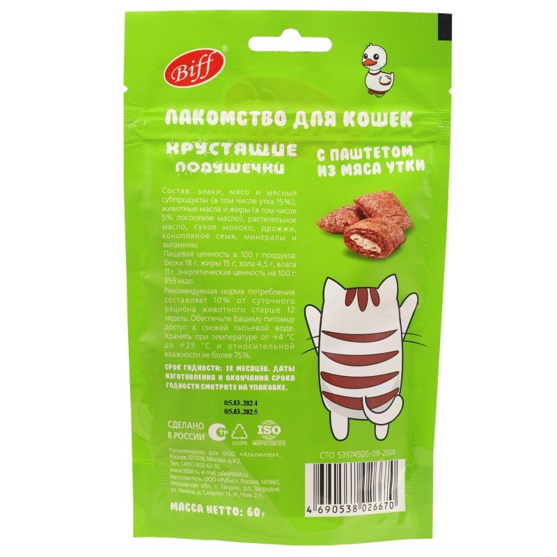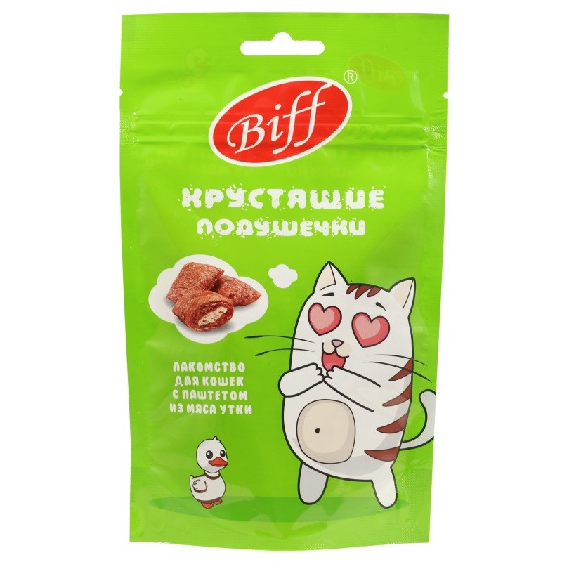 Хрустящие подушечки для кошек с паштетом из утки – это вкусное и полезное лакомство. Паштет, содержащийся внутри каждой подушечки, имеет мягкую однородную консистенцию в виде мусса и неповторимый
