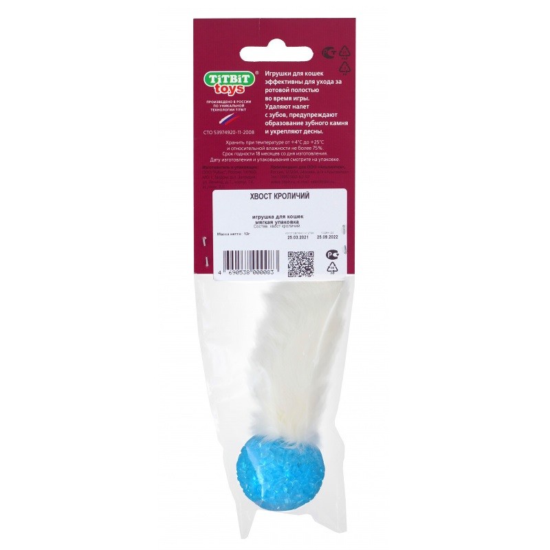 TiTBiT Игрушка для кошек «Хвост кроличий» (мягкая упаковка), 12 г