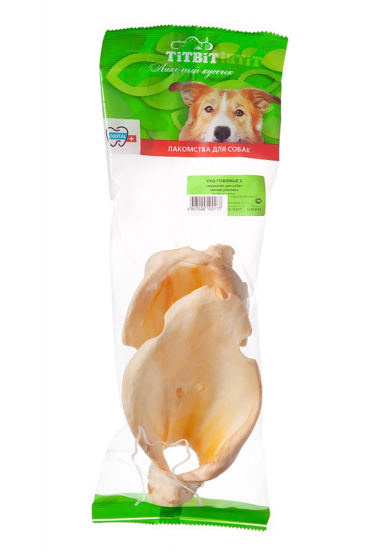 Главная Собаки Лакомства TiTBiT Ухо говяжье 2 (мягкая упаковка), 60 г