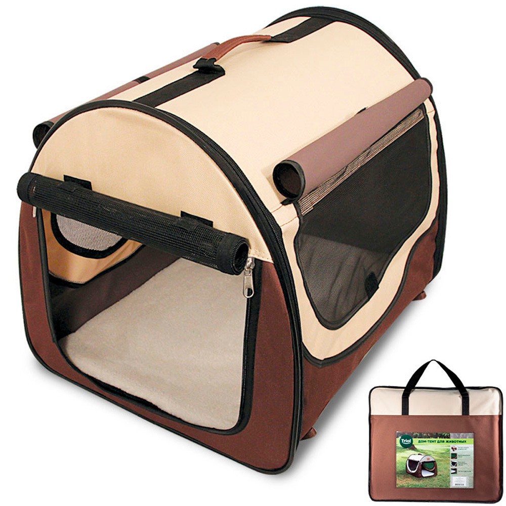 Складной дом-тент Triol для животных — оптимальное решение для отдыха за городом, работы на выставках и для комфортной транспортировки питомца в автомобиле. Тент овальной формы оснащен большим