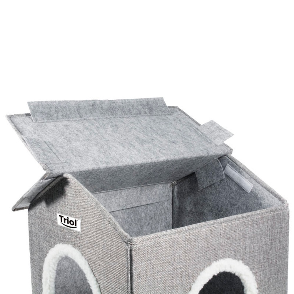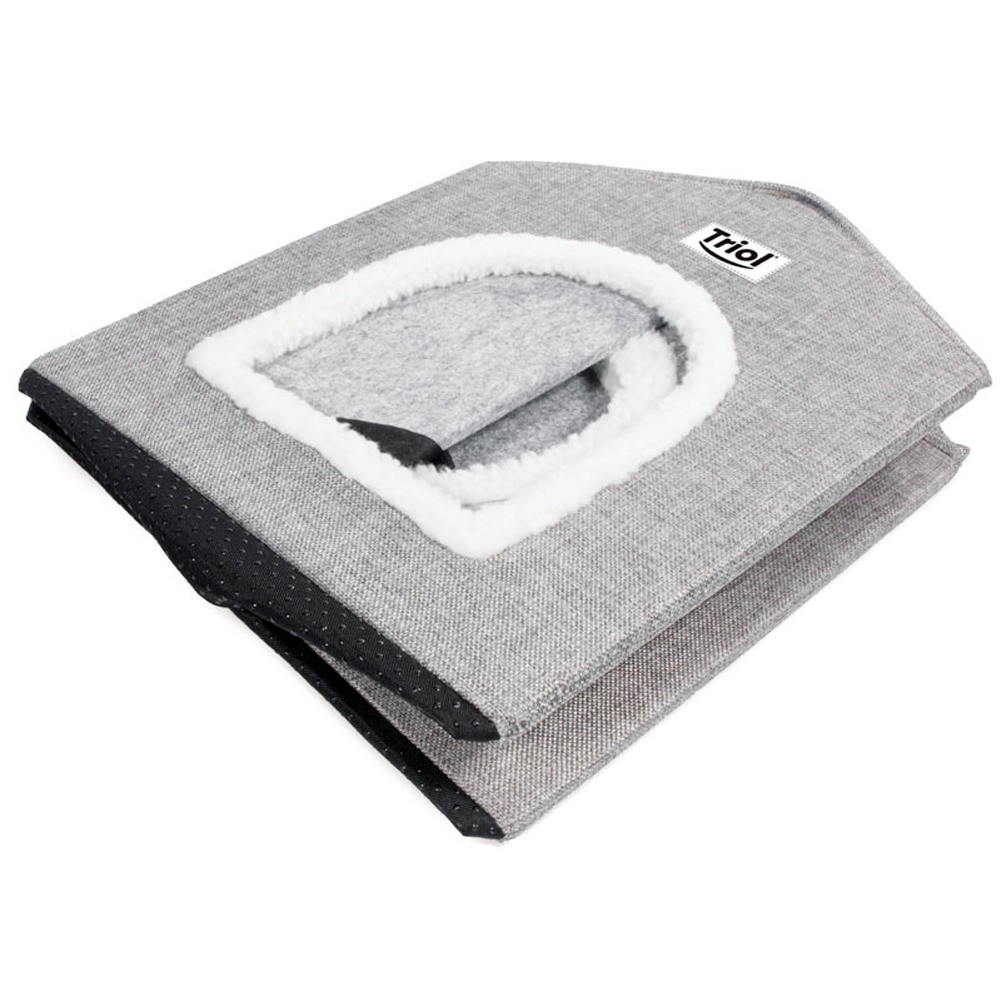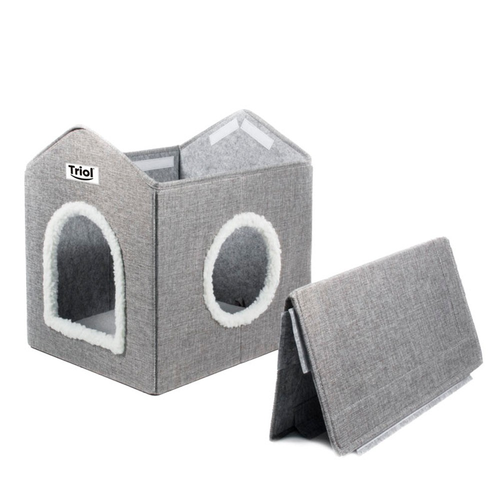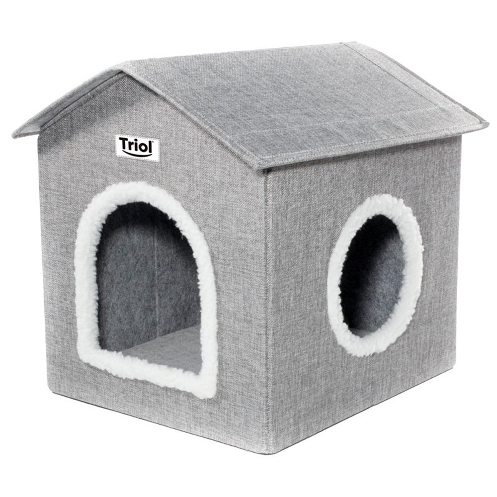 МДФ. К домику прилагается мягкая лежанка, которая обеспечит питомцу максимальный комфорт. Изделие компактно складывается, его удобно перевозить и хранить. Сборка также не доставит проблем — крыша