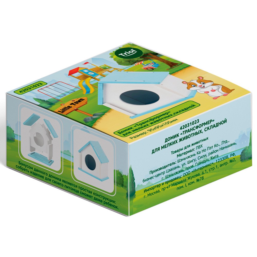 Домик «Трансформер» для мелких животных от TRIOL – это не только надежное убежище для маленького питомца. В комплект входит сменная задняя стенка с круглым отверстием посередине, благодаря которой