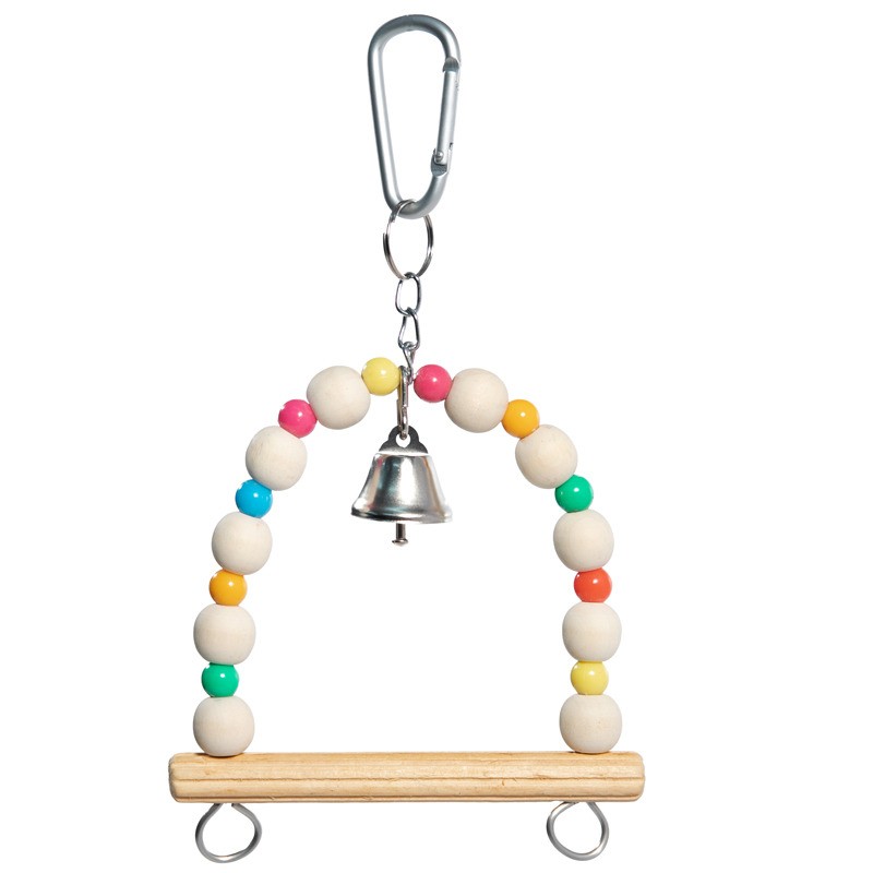 Triol Игрушка для птиц «Качели с колокольчиком» — игрушка для птиц в виде качелей из деревянных и пластиковых бус и колокольчика.