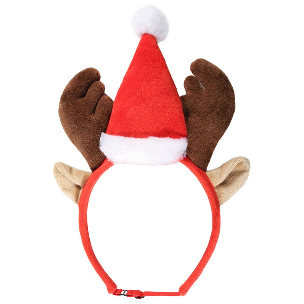 на голове животного при помощи резинки с фиксатором, не создавая дискомфорт во время ношения. Идеальный атрибут для новогодних фотографий.