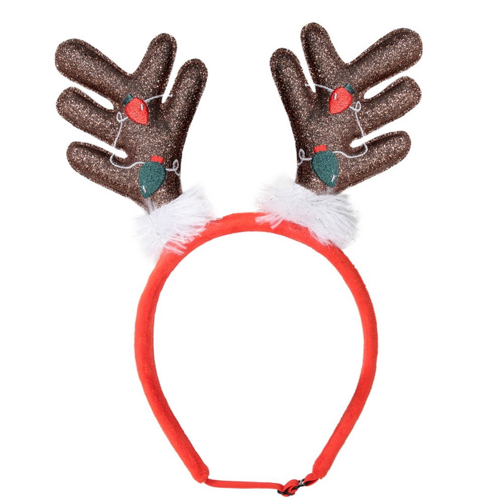 на голове животного при помощи резинки с фиксатором, не создавая дискомфорт во время ношения. Идеальный атрибут для новогодних фотографий.