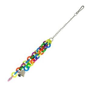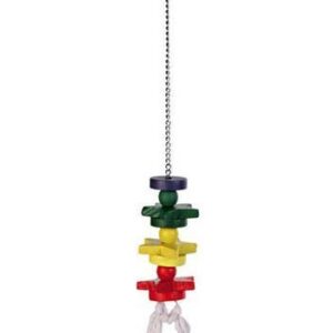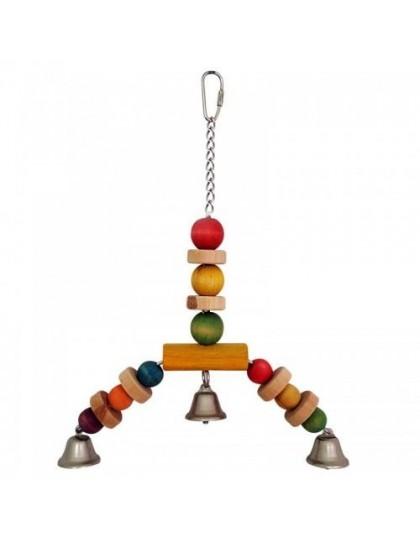 Игрушка для птиц — подвеска в виде деревянных фигур с колокольчиками.