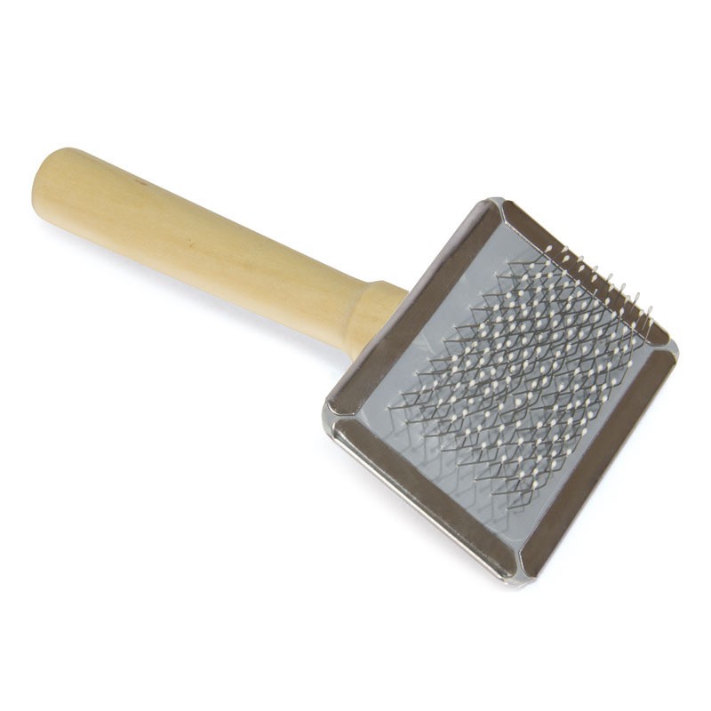 Пуходерка имеет частую тонкую металлическую щетину с каплями на кончиках, что позволяет избежать травмирования кожи вашего питомца. Изделие удобно лежит в руке и не причиняет дискомфорта животному
