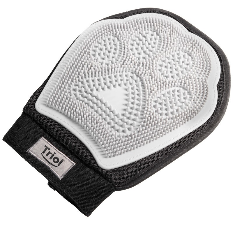 Triol Щетка-рукавица «Премиум» — отличный инструмент для бережного ухода за шерстью вашего питомца. Благодаря наличию резиновых зубцов, расположенных с разной частотой, при вычесывании достигается