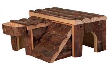 Домик Trixie «Luka» сделан из натурального дерева, укомплектован миской для корма. Подходит для мышей и хомяков.