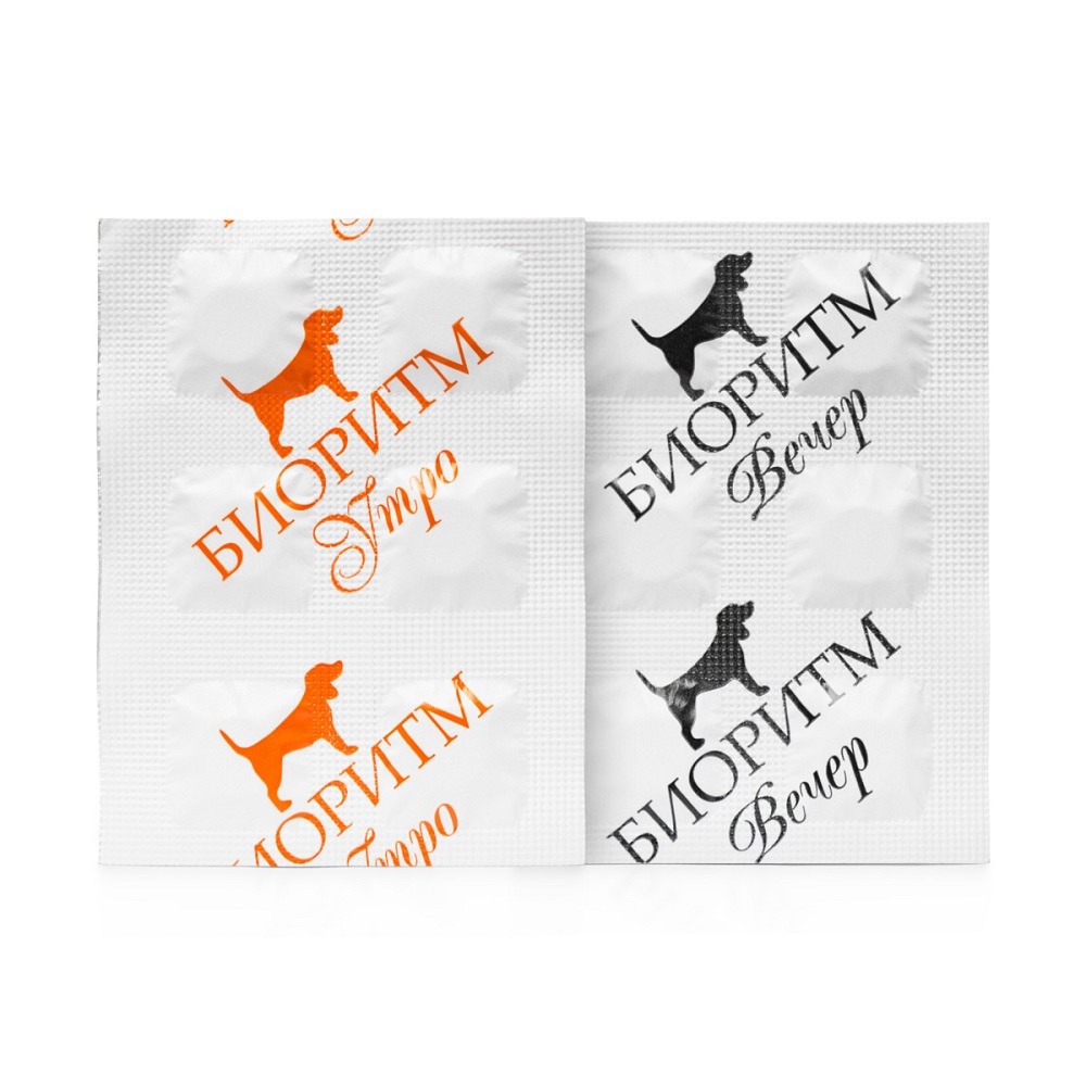 По одной таблетке 2 раза в день. В первой половине дня — таблетка из стрипа с оранжевой маркировкой, во второй половине дня — таблетка из стрипа с чёрной маркировкой. Комплекс БИОРИТМ для щенков