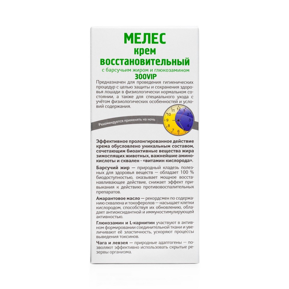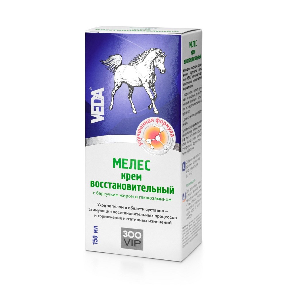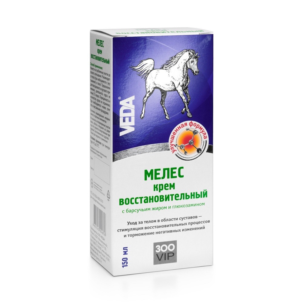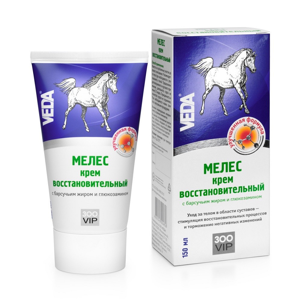 VEDA ЗООVIP МЕЛЕС — восстановительный крем с барсучьим жиром и глюкозамином для лошадей.