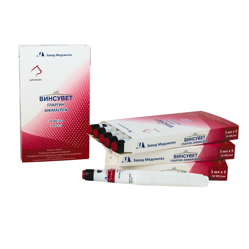 Винсувет Гларгин Animalpen (Vinsuvet glargin Animalpen pro felibus) применяют кошкам для лечения сахарного диабета, требующего инсулинотерапии.