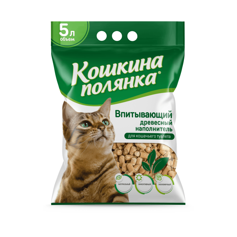 Древесный гранулированный наполнитель “Кошкина полянка”— органический продукт, изготовленный из высококачественной древесины хвойных пород с минимальным содержанием коры, обладает