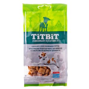 TiTBiТ Хрустящие подушечки с начинкой со вкусом индейки и шпината для маленьких пород, 95 г